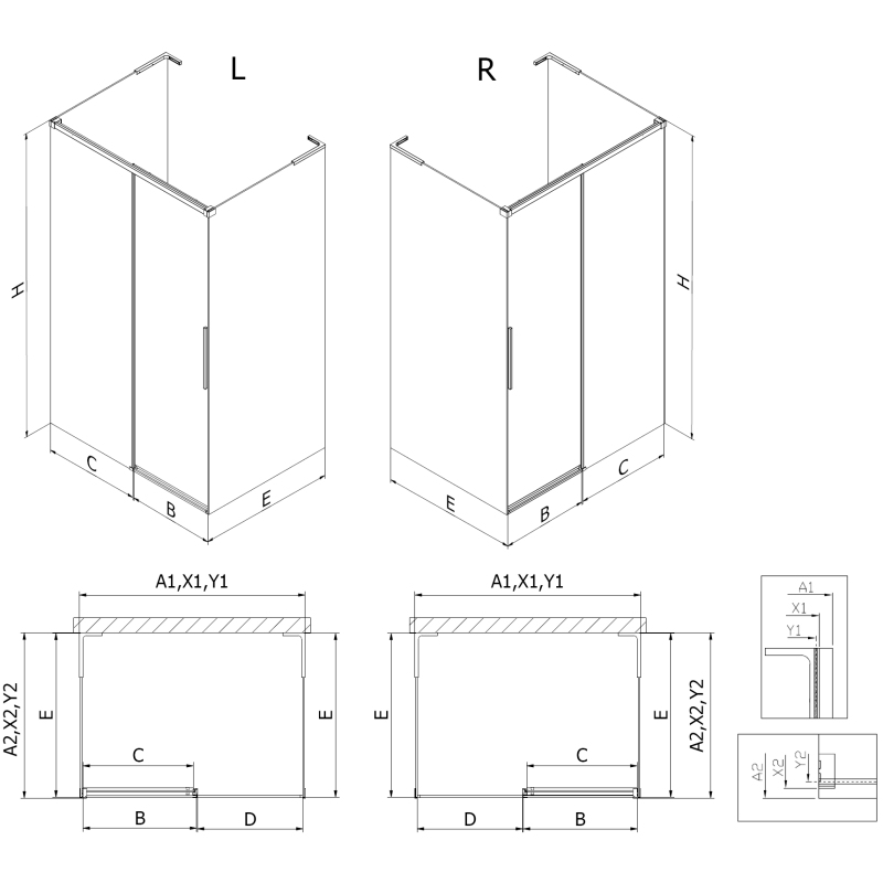 Specifikace produktu: Rozměr: 100x85 cm (dveře 100 cm, stěny 85 cm) Výška: 200 cm Strana montáže: Univerzální Vchod: Posuvné dveře Barva skla: Průhledná Povrchová úprava: Černá Profil: Hliník Stabilizátor ve tvaru L: Nerezová ocel Typ skla: Tvrzené Tloušťka skla: 8 mm Povlak pro snadné čištění Možnost nastavení šířky Dva montážní systémy: - S profilem, který umožňuje vyrovnání nerovností stěn - Bez profilu pro dokonale rovné stěny Možnost montáže na sprchovou vaničku nebo obklady Neviditelný mechanismus posuvných a dveřních prvků Vodítka s funkcí tlumení zavírání Posuvník zaručující tichý chod dveří Možnost vyklopení dveří pro čištění kabiny Elastomerová těsnění, která odvádějí vodu Hliníkový práh těsnění dveří