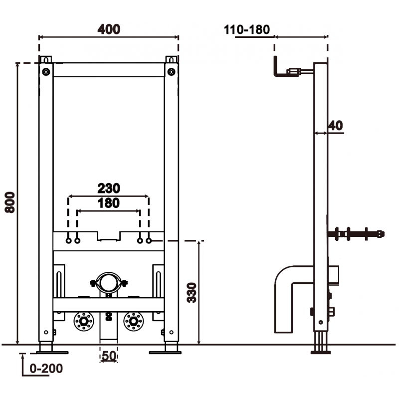 Specyfikacja produktu: Wysokość: 80 cm Szerokość: 40 cm Do montażu w ścianie pełnej lub ścianie z płyty gipsowej Nogi ocynkowane, regulowane w zakresie 0-20 cm Wsporniki ocynkowane, regulowane w zakresie 110-180 mm Do kompletowania z miskami bidetowymi o rozstawie 18 lub 23 cm