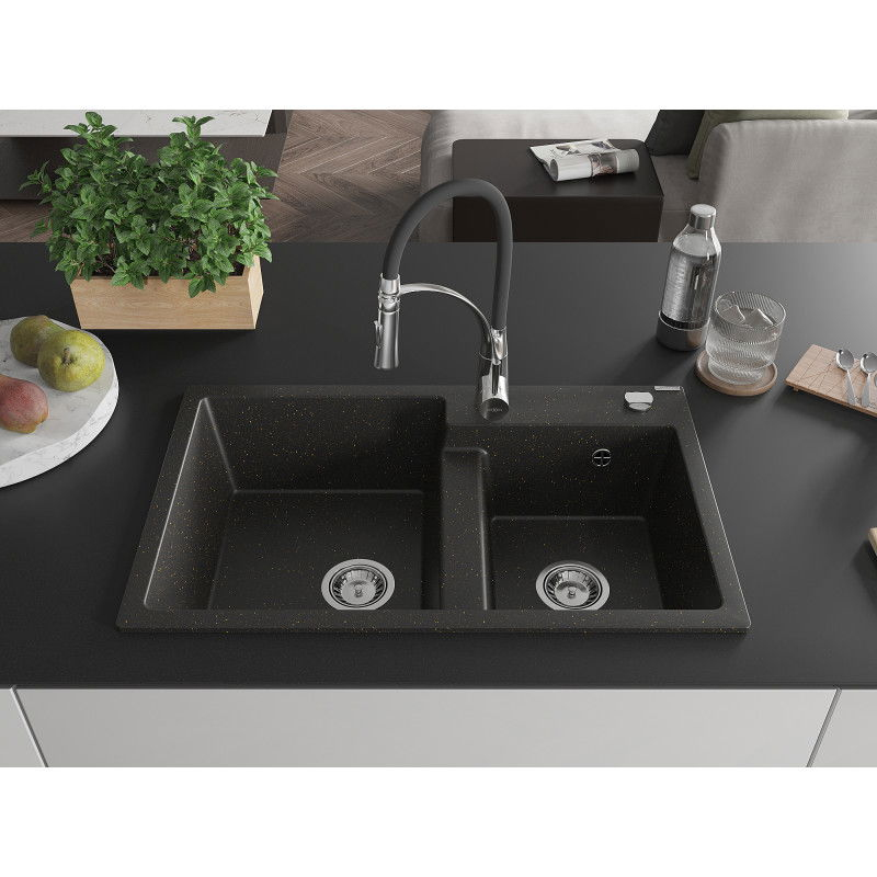 Mexen Tomas Dvojdřez, granit s baterií Aster, černá/zlatá 6516-75-73450-07