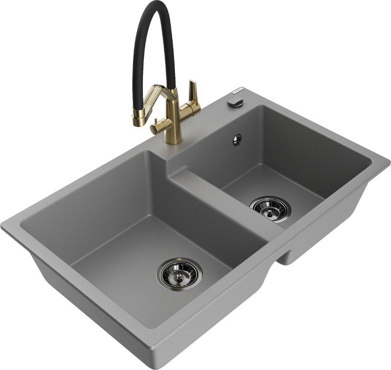 Mexen Tomas 2miskový granitový dřez s kuchyňskou baterií Duo, šedá - 6516-71-671701-57-B