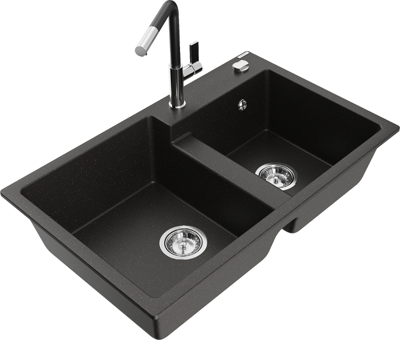 Mexen Tomas Dvojdřez, granit s baterií Flora, černá/zlatá 6516-75-670401-07