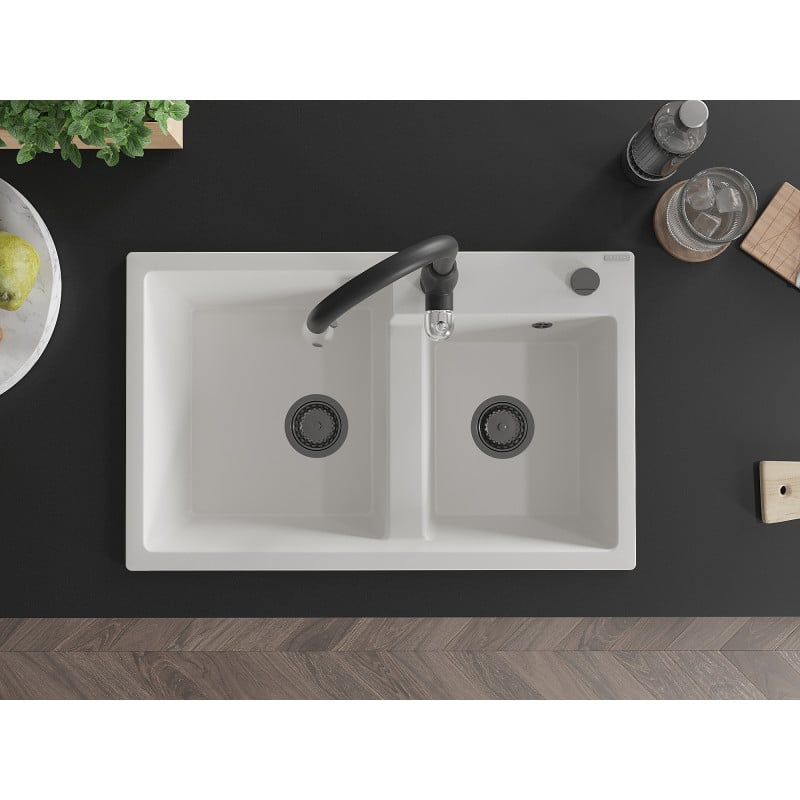 Mexen Tomas 2miskový granitový dřez s kuchyňskou baterií Savita, bílá - 6516-20-672601-70