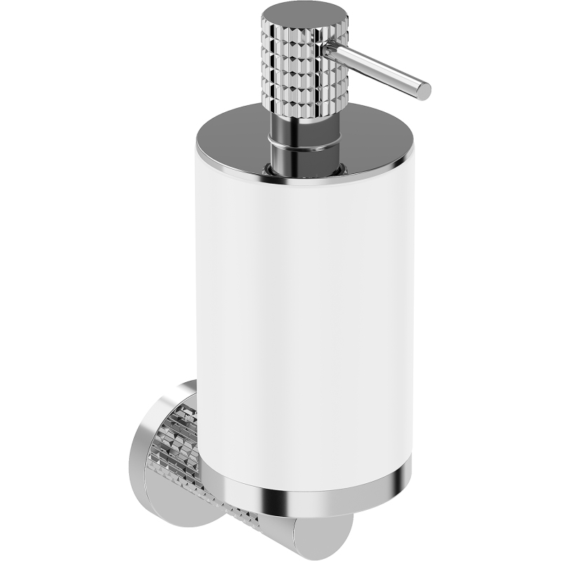 Specyfikacja produktu: Materiał: Metal + Konglomerat Wykończenie: Biały/Chrom Szerokość: 7 cm Wysokość: 20 cm Odległość od ściany: 10 cm Pojemność: 250 ml