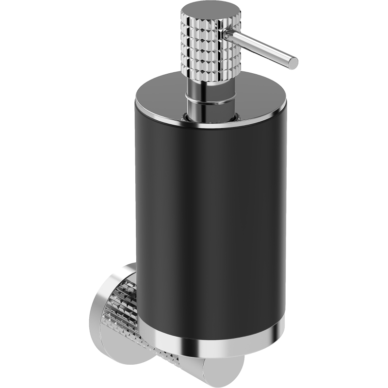 Specyfikacja produktu: Materiał: Metal + Konglomerat Wykończenie: Czarny/Chrom Szerokość: 7 cm Wysokość: 20 cm Odległość od ściany: 10 cm Pojemność: 250 ml