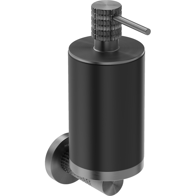 Specyfikacja produktu: Materiał: Metal + Konglomerat Wykończenie: Czarny/Gun gray szczotkowany Szerokość: 7 cm Wysokość: 20 cm Odległość od ściany: 10 cm Pojemność: 250 ml
