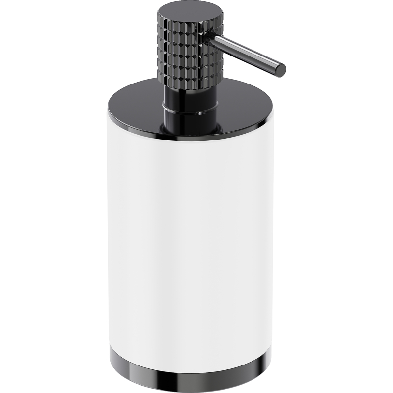 Specyfikacja produktu: Materiał: Stal nierdzewna + Konglomerat Wykończenie: Biały/Black chrome Szerokość: 7 cm Wysokość: 16 cm Pojemność: 250 ml