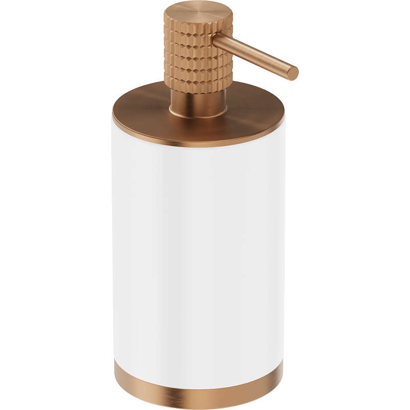 Specyfikacja produktu: Materiał: Stal nierdzewna + Konglomerat Wykończenie: Biały/Miedź szczotkowana Szerokość: 7 cm Wysokość: 16 cm Pojemność: 250 ml