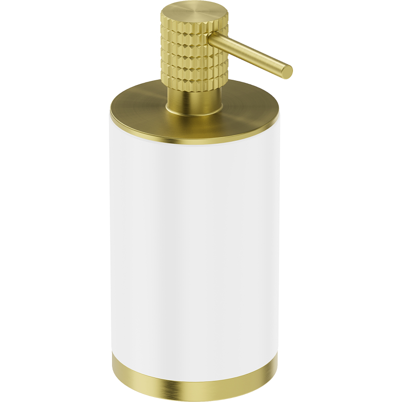 Specyfikacja produktu: Materiał: Stal nierdzewna + Konglomerat Wykończenie: Biały/Złoty szczotkowany Szerokość: 7 cm Wysokość: 16 cm Pojemność: 250 ml