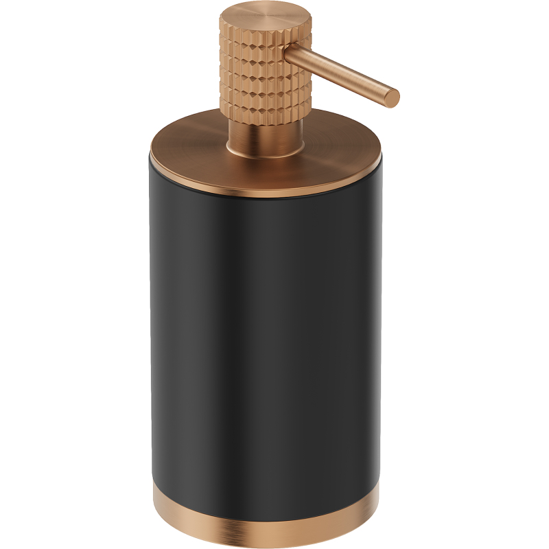 Specyfikacja produktu: Materiał: Stal nierdzewna + Konglomerat Wykończenie: Czarny/Miedź szczotkowana Szerokość: 7 cm Wysokość: 16 cm Pojemność: 250 ml