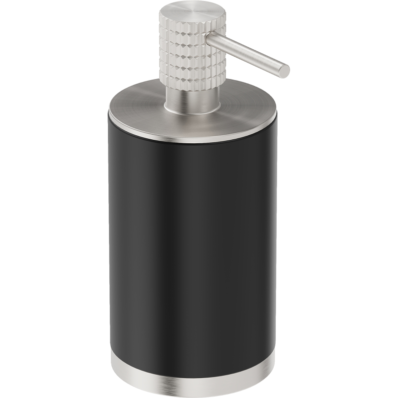Specyfikacja produktu: Materiał: Stal nierdzewna + Konglomerat Wykończenie: Czarny/Nikiel szczotkowany Szerokość: 7 cm Wysokość: 16 cm Pojemność: 250 ml