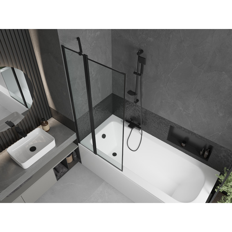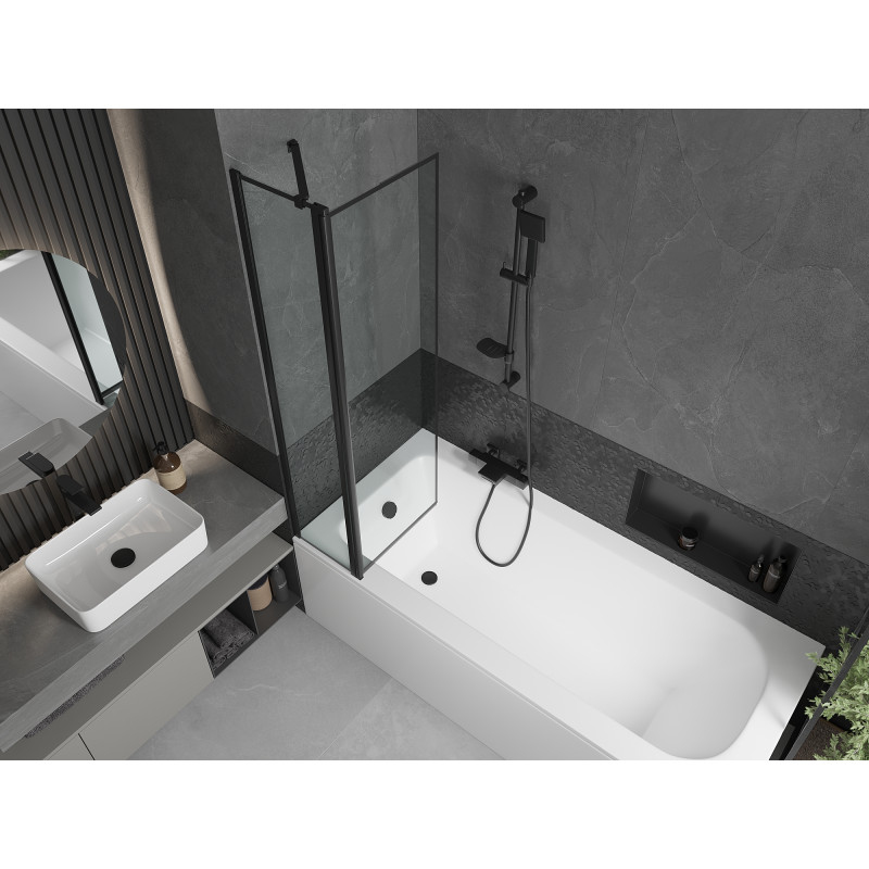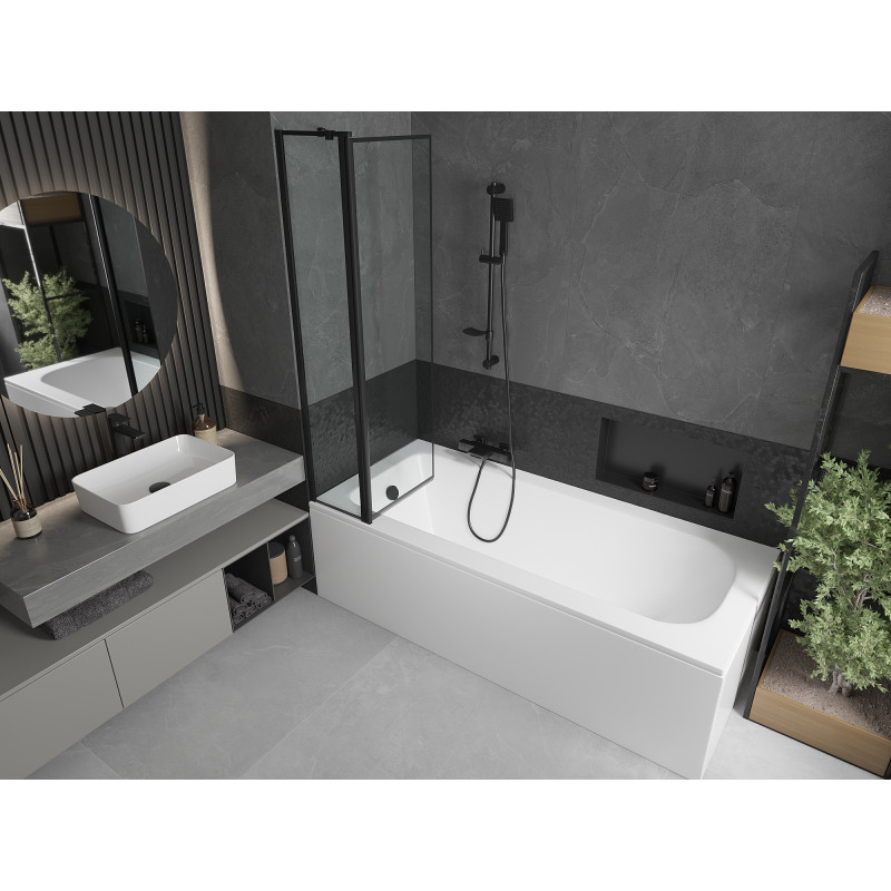Mexen Vega vana 150x70 cm s panelem a zástěnou 80 cm, černý vzor 550115070X9408117070