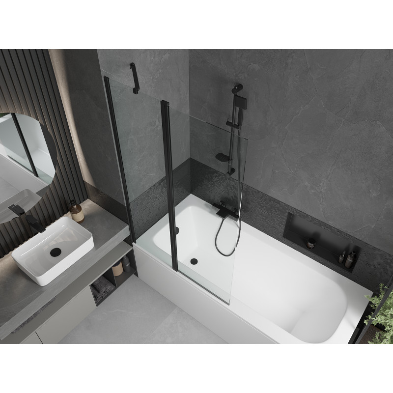 Mexen Vega vana 160x70cm panel + zástěna 100 cm, průhledná, černá 550116070X9410117000