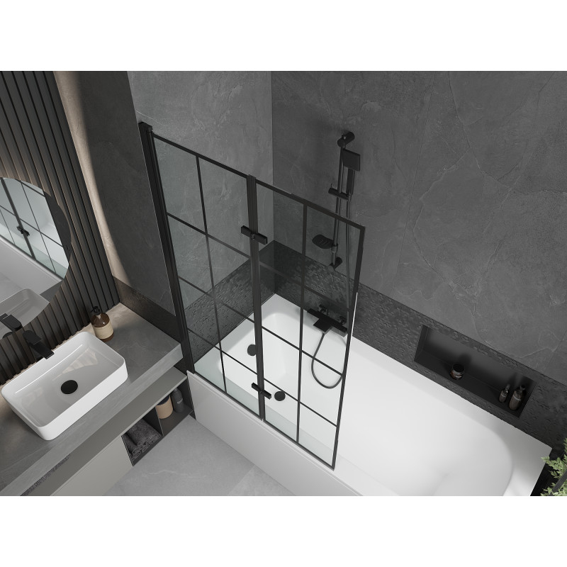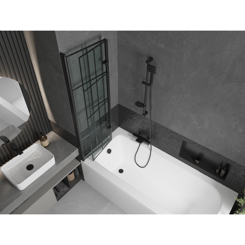 Mexen Vega vana 160x70 cm s panelem a zástěnou 100 cm, černý vzor 550116070X9210027077