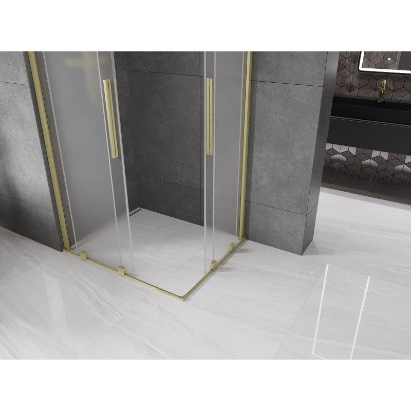 Specifikace produktu: Rozměr: 100x90 cm Výška: 200 cm Montáž: Univerzální Vstup: Posuvné dveře Barva skla: Mléčná Povrchová úprava: Kartáčované zlato Typ skla: Tvrzené Tloušťka skla: 8 mm Profil: Hliník Povrchová úprava pro snadné čištění Vyrovnání nerovností stěny Nastavení šířky Možnost montáže na sprchovou vaničku nebo obklady Jednoduché válečky nejvyšší kvality Nerezová rukojeť Sada těsnění pro odvod vody Hliníkový práh těsnění dveří