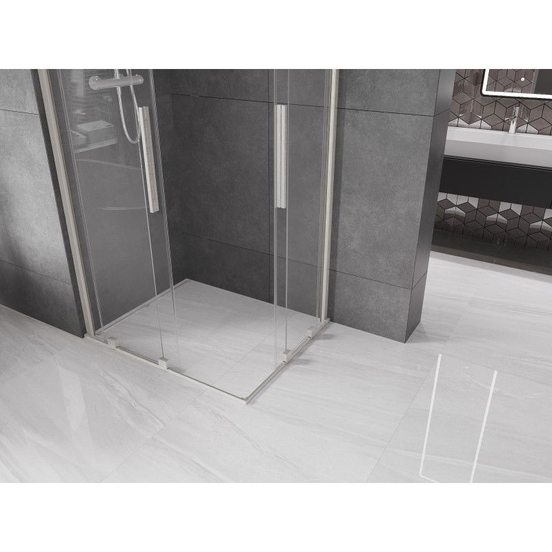 Specifikace produktu: Rozměr: 90x80 cm Výška: 200 cm Montáž: Univerzální Vstup: Posuvné dveře Barva skla: Průhledná Povrchová úprava: Kartáčovaný nikl Typ skla: Tvrzené Tloušťka skla: 8 mm Profil: Hliník Povlak pro snadné čištění Vyrovnání nerovností stěny Nastavení šířky Možnost montáže na sprchovou vaničku nebo obklady Jednoduché válečky nejvyšší kvality Nerezová rukojeť Sada těsnění pro odvod vody Hliníkový práh těsnění dveří