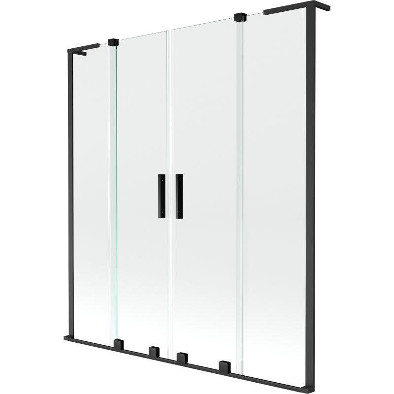 Mexen Velar L Duo 2dílná posuvná vanová zástěna 160 x 150 cm, průhledná, černá - 896-160-003-02-70