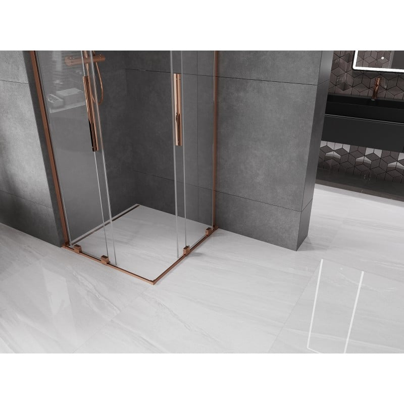 Mexen Velar L Duo posuvný sprchový kout 100 x 100 cm, průhledný, růžové zlato - 871-100-100-02-03-60