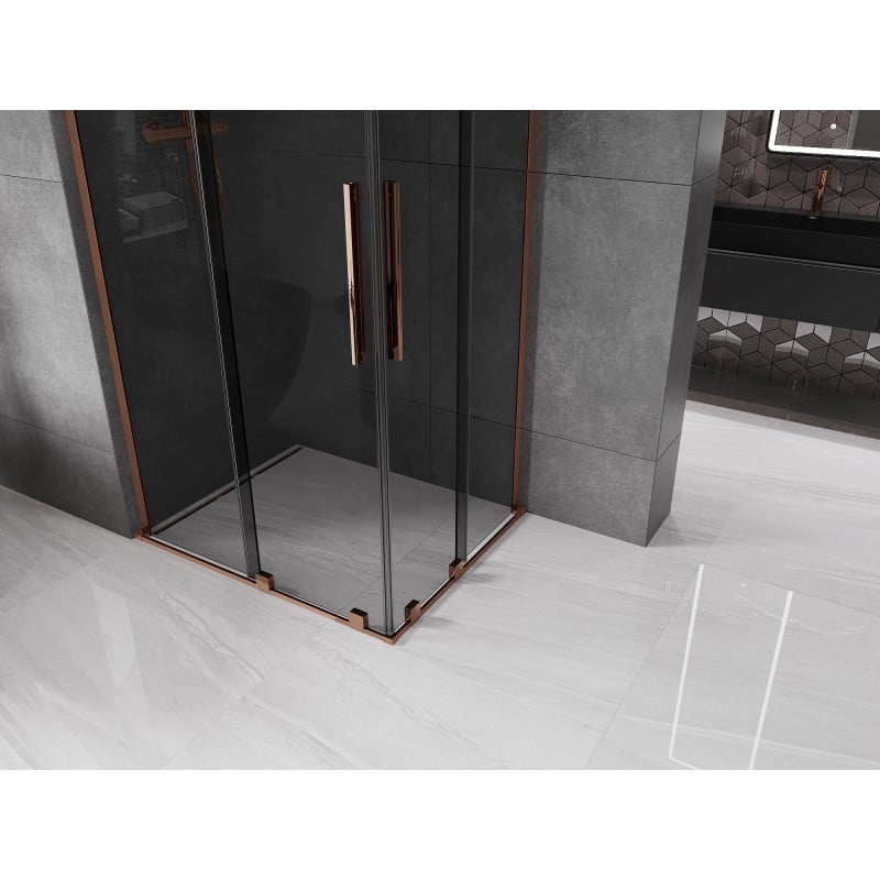 Mexen Velar L Duo posuvný sprchový kout 100 x 90 cm, grafit, růžové zlato - 871-100-090-02-43-60