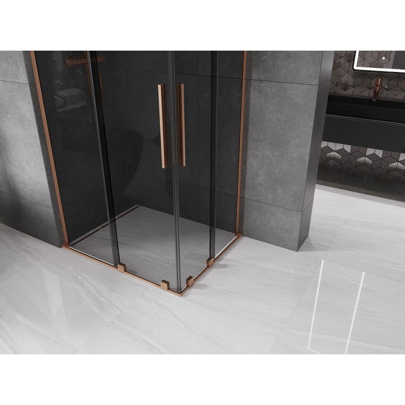 Mexen Velar L Duo posuvný sprchový kout 90 x 80 cm, grafit, kartáčovaná měď - 871-090-080-02-43-65
