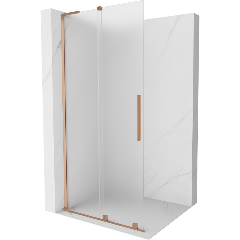 Specifikace produktu: Rozměr: 90x200 cm Montáž: Univerzální Barva skla: Mléčná Povrchová úprava: Kartáčovaná měď Typ skla: Tvrzené Tloušťka skla: 8 mm Profil: Hliník Stabilizátor úhlu L: Nerezová ocel Povlak pro snadné čištění Vyrovnání nerovností stěny Nastavení šířky Možnost montáže na sprchovou vaničku nebo obklady Nerezová rukojeť Sada těsnění pro odvod vody Hliníkový práh pro těsnění dveří