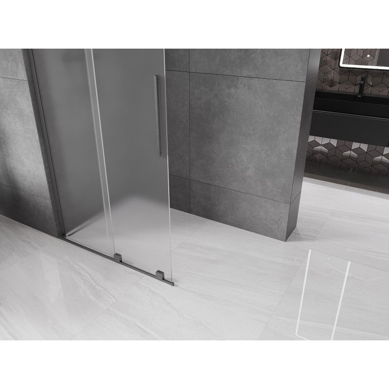 Mexen Velar L Posuvná sprchová zástěna 90 x 200 cm, matná tloušťka 8 mm, kartáčovaná pistolově šedá - 871-090-003-33-66