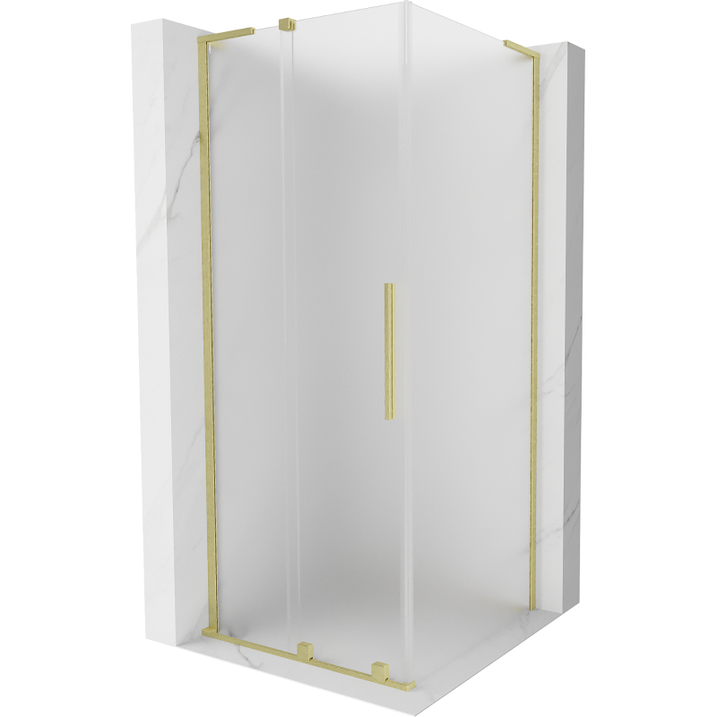 Mexen Velar L posuvný sprchový kout 100 x 100 cm, matná, kartáčované zlato - 871-100-100-33-55
