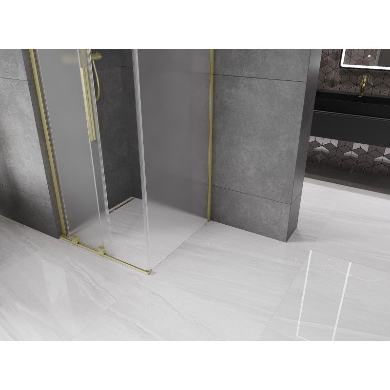 Specifikace produktu: Rozměr: 100x100 cm (dveře 100 cm, stěna 100 cm) Výška: 200 cm Montáž: Univerzální Vstup: Posuvné dveře Barva skla: Mléčná Povrchová úprava: Kartáčované zlato Typ skla: Tvrzené Tloušťka skla: 8 mm Profil: Hliník Stabilizátor úhlu L: Nerezová ocel Povlak pro snadné čištění Vyrovnání nerovností stěny Nastavení šířky Možnost montáže na sprchovou vaničku nebo obklady Jednoduché válečky nejvyšší kvality Nerezová rukojeť Sada těsnění pro odvod vody Hliníkový práh těsnění dveří