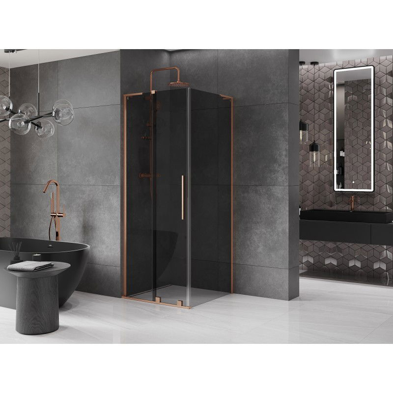 Mexen Velar L sprchový kout posuvný 90 x 90 cm, grafit, kartáčovaná měď - 871-090-090-43-65