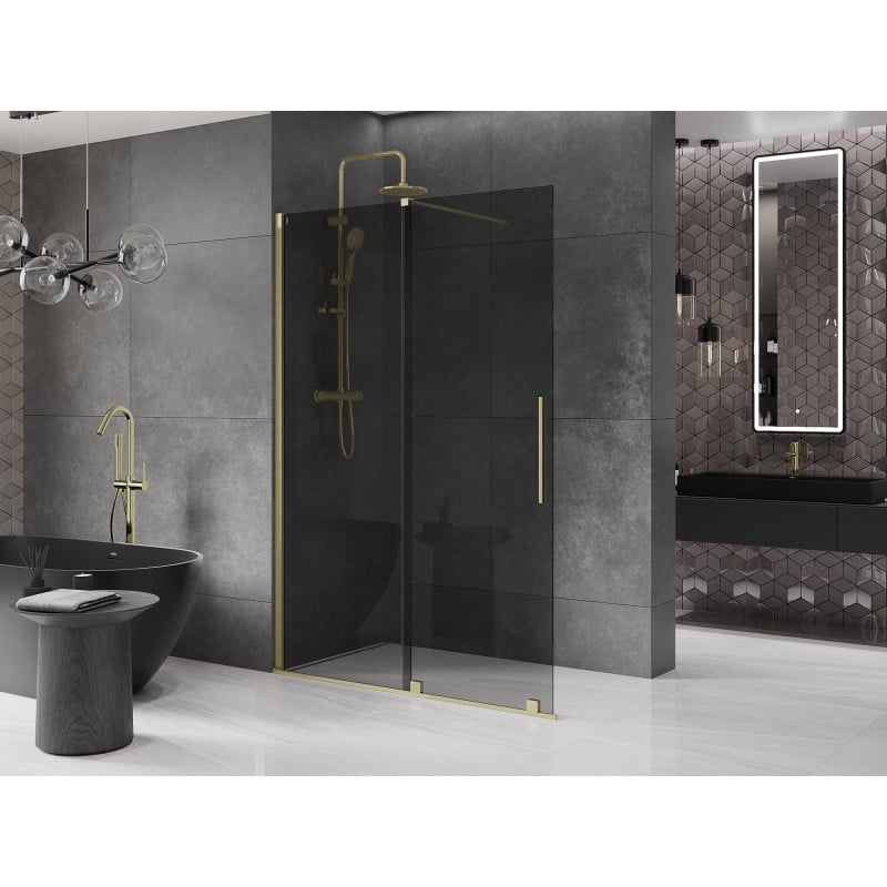Mexen Velar Posuvná sprchová zástěna 140 x 200 cm, grafit 8 mm, kartáčované zlato - 871-140-000-43-55