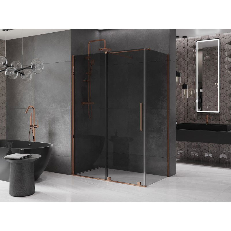 Mexen Velar posuvný sprchový kout 140 x 70 cm, grafit, růžové zlato - 871-140-070-41-60
