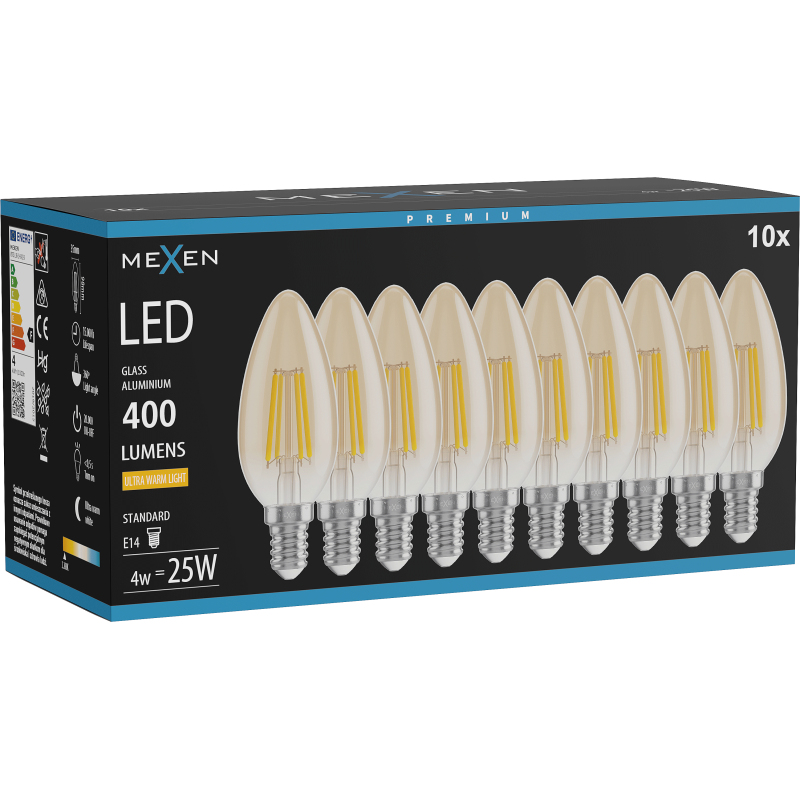 Mexen Vintis 10x żarówka filament LED E14, C35, 4W, Ciepła - 2200K, 400 lm, amber - L154-E14-0422-50x10