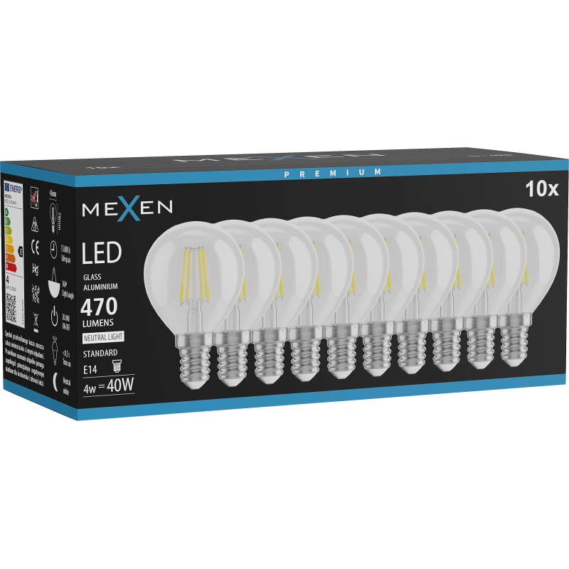Mexen Vintis 10x żarówka filament LED E14, G45, 4W, Neutralna - 4000K, 470 lm, clear - L156-E14-0427-00x10