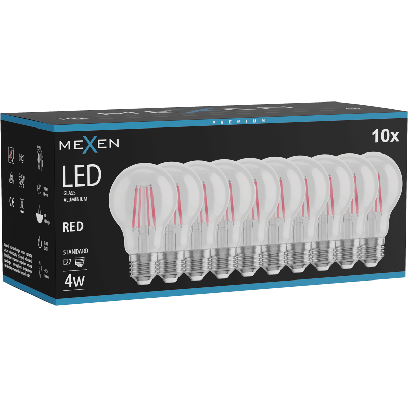 Mexen Vintis 10x żarówka filament LED E27, A60, 4W, 55 lm, red - L150-E27-04XX-45x10