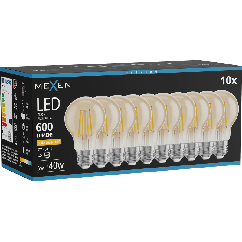 Mexen Vintis 10x żarówka filament LED E27, A60, 6W, Ciepła - 2200K, 600 lm, amber - L150-E27-0622-50x10