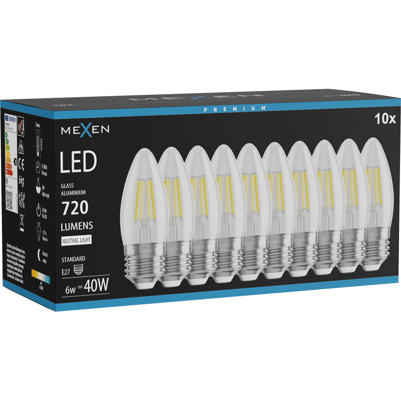 Mexen Vintis 10x żarówka filament LED E27, C35, 6W, Neutralna - 4000K, 720 lm, clear - L154-E27-0640-00x10