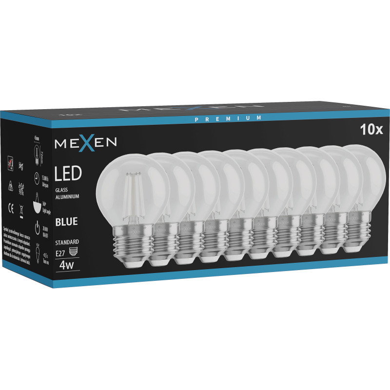 Mexen Vintis 10x żarówka filament LED E27, G45, 4W, 55 lm, blue - L156-E27-04XX-47x10