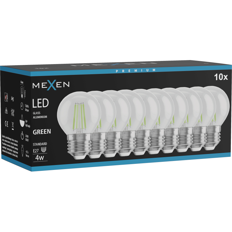 Mexen Vintis 10x żarówka filament LED E27, G45, 4W, 55 lm, green - L156-E27-04XX-46x10
