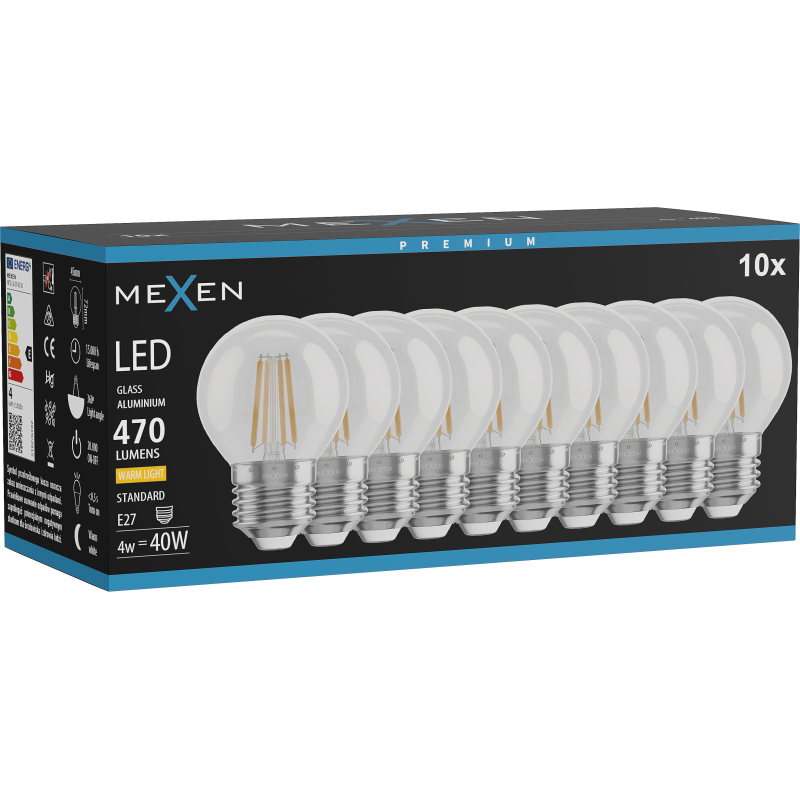 Mexen Vintis 10x żarówka filament LED E27, G45, 4W, Ciepła - 2700K, 470 lm, clear - L156-E27-0427-00x10