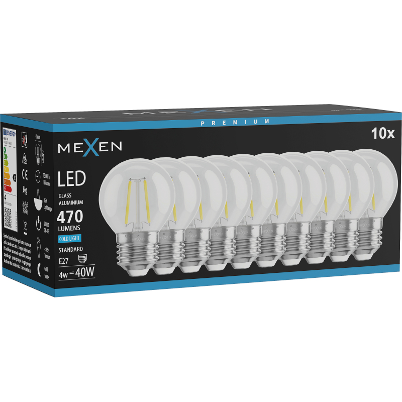 Mexen Vintis 10x żarówka filament LED E27, G45, 4W, Zimna - 6500K, 470 lm, clear - L156-E27-0465-00x10