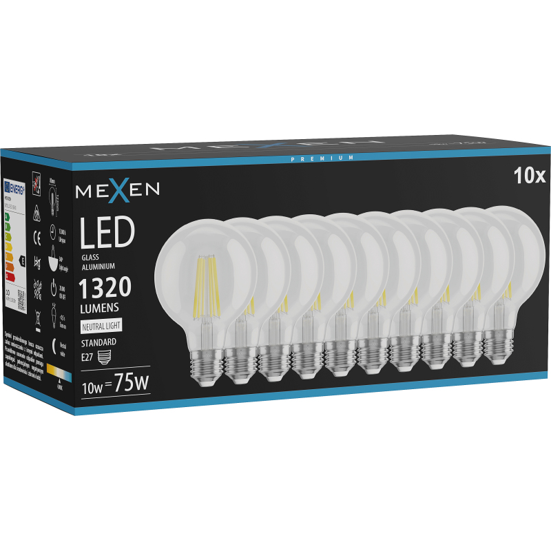 Mexen Vintis 10x żarówka filament LED E27, G80, 10W, Neutralna - 4000K, 1320 lm, clear - L155-E27-1040-00x10