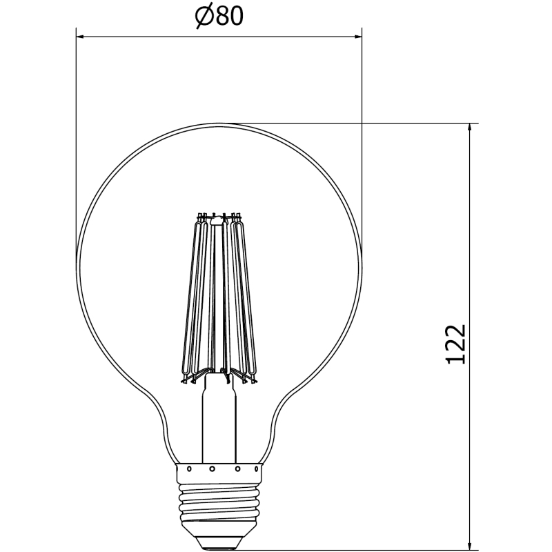 Dane techniczne: Wysokość: 122 mm Szerokość: 80 mm Rodzaj żarówki: G80 Rodzaj gwintu: E27 Moc: 10 W Równoważna moc: 75 W Strumień świetlny: 1320 lm Barwa światła: Neutralna Temperatura barwowa: 4000K Wskaźnik oddawania barw CRI: Ra ≥ 80 Możliwość ściemniania: Nie Kolor klosza: Clear Materiał klosza: Szkło Ilość sztuk w opakowaniu: 10 Kąt świecenia: 360º Napięcie: 220-240V Klasa energetyczna: E Zużycie energii: 10 kWh/1000 h Stopień ochrony: IP20 Certyfikaty: CE, RoHS