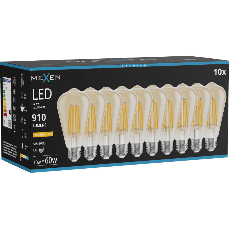 Mexen Vintis 10x żarówka filament LED E27, ST64, 10W, Ciepła - 2200K, 910 lm, amber - L152-E27-1022-50x10