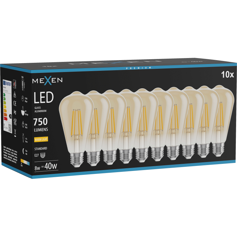 Mexen Vintis 10x żarówka filament LED E27, ST64, 8W, Ciepła - 2700K, 750 lm, amber - L152-E27-0827-50x10
