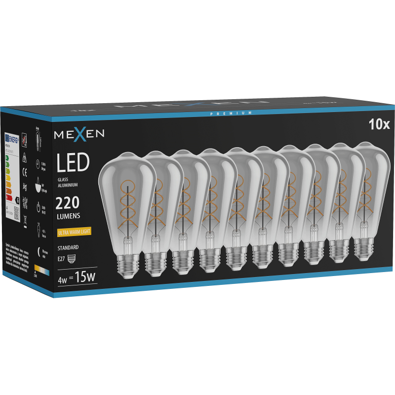 Mexen Vintis 10x żarówka filament spirala LED E27, ST64, 4W, Ciepła - 2200K, 220 lm, smoke - L162-E27-0422-70x10