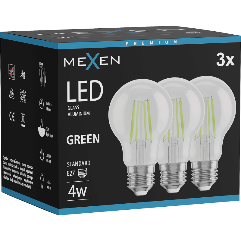 Mexen Vintis 3x żarówka filament LED E27, A60, 4W, 55 lm, green - L150-E27-04XX-46x03
