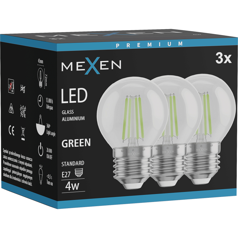 Mexen Vintis 3x żarówka filament LED E27, G45, 4W, 55 lm, green - L156-E27-04XX-46x03