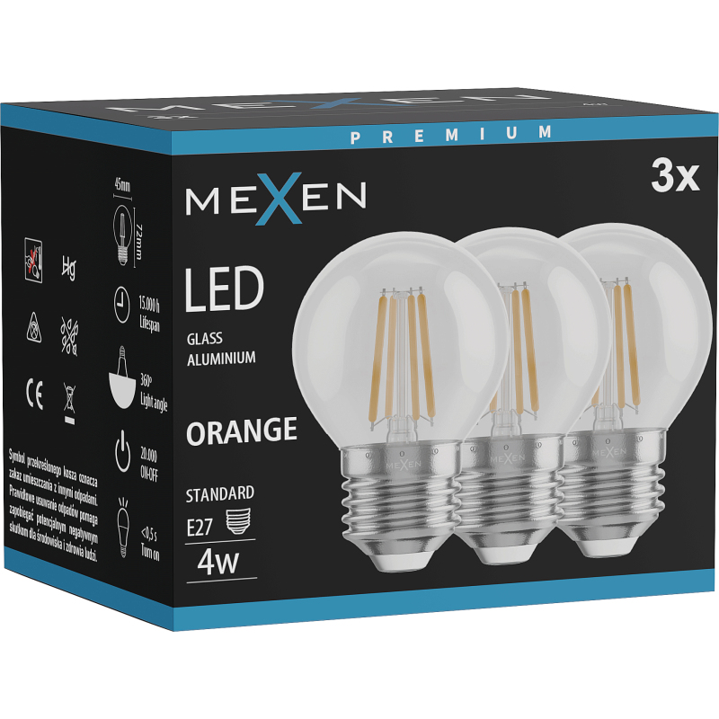 Mexen Vintis 3x żarówka filament LED E27, G45, 4W, 55 lm, orange - L156-E27-04XX-48x03
