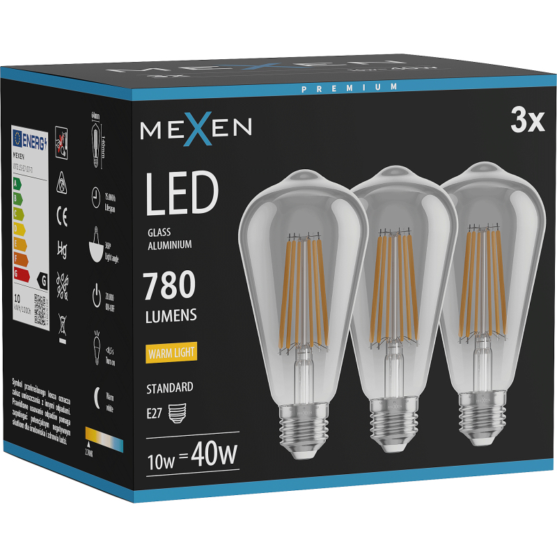 Mexen Vintis 3x żarówka filament LED E27, ST64, 10W, Ciepła - 2700K, 780 lm, smoke - L152-E27-1027-70x03