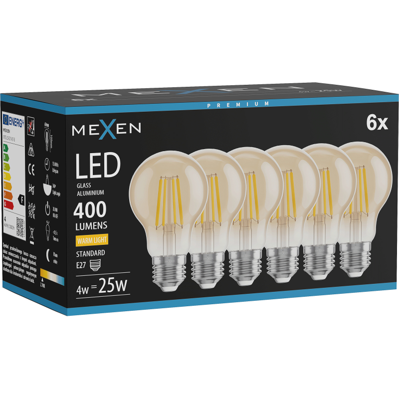 Mexen Vintis 6x żarówka filament LED E27, A60, 4W, Ciepła - 2700K, 400 lm, amber - L150-E27-0427-50x06