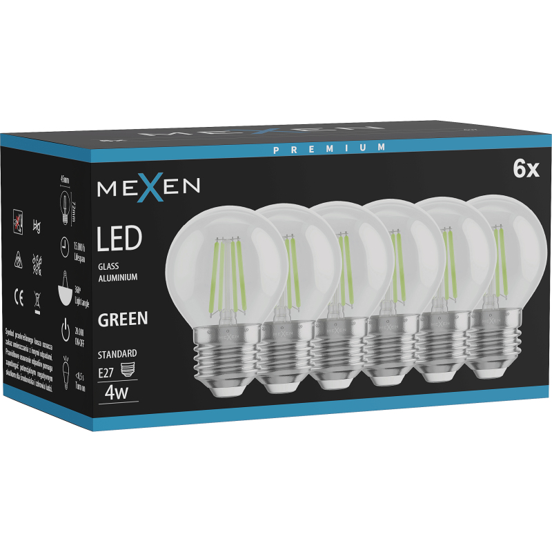 Mexen Vintis 6x żarówka filament LED E27, G45, 4W, 55 lm, green - L156-E27-04XX-46x06